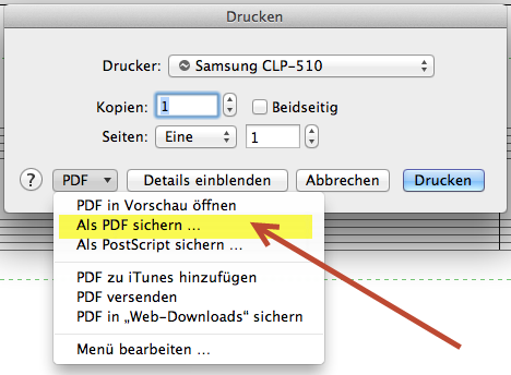 Über den Apple-Druckerdialog können jetzt auch PDF-Dateien erzeugt werden.