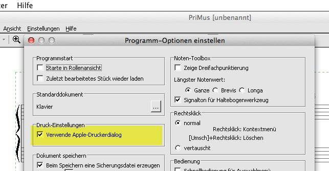 Sie können anstelle des PriMus-Druckdialogs jetzt den direkten Apple-Druckerdialog aufrufen.