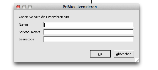 Klicken Sie auf Öffnen. Es erscheint nach einiger Zeit das Dialogfenster zur Eingabe der Lizenz-Daten. Die Lizenzdaten wurden Ihnen per Email oder Post zugestellt. Füllen Sie die drei Felder aus.